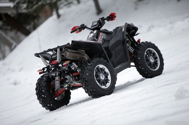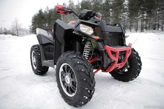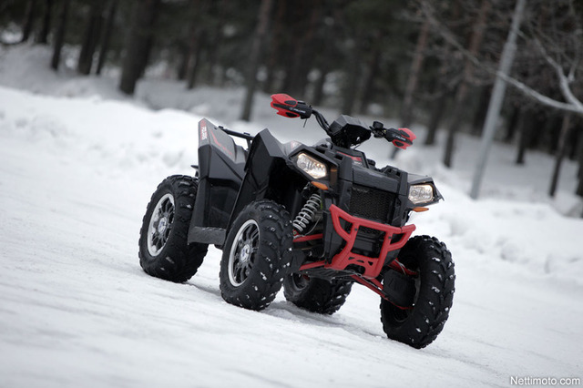 Scrambler XP 850 kiihtyvyys on muikeaa ja Polaris jättää taakseen suurimman osan muista. Jopa lumisella alustalla se on on demand -nelivetonsa ansiosta ärhäkkä laite. Nelivetoisuus onkin asia, mikä tekee siitä erinomaisen ajettavan kaikilla mahdollisilla alustoilla.