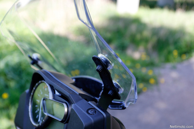 Tuulenohjainta saa nostettua vakiokorkeudesta, mutta se vaatii kuusiokoloavaimen käyttämistä. Ruuvaamalla pleksiä saa korotettua reippaan sentin, mikä saattaa juuri ja juuri ratkaista ongelman.