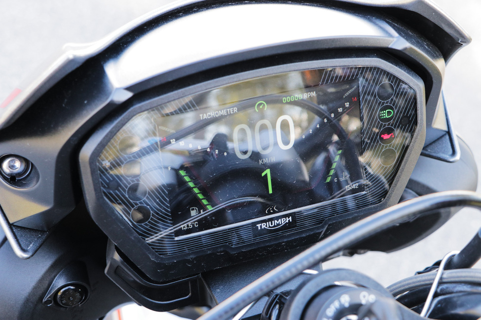 123 hevosvoiman irrottaminen pienestä moottorista on kelpo suoritus, mutta luku ei tunnu tekevän oikeutta todellisuudelle. 123 hevosvoimaa tuntuu reaalimaailmassa alaspäin liioitellulta, sillä yläkierroksilla Triumph laulaa niin kauniisti, että kyseessä luulisi olevan selvästi tehokkaampi ja isompi voimanlähde.