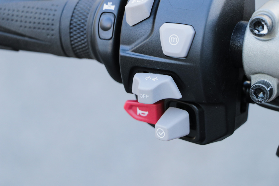 RS-malliin on vihdoin saatu vakiovarusteeksi molempiin suuntiin toimiva quickshifter. Sen avulla Trumpan ohjaimissa voi potkia pykälät sisään raakana ilman kytkintä. Varuste on erityisesti radalla loistava kapine, mutta mielellään sitä käyttää myös katuajossa.