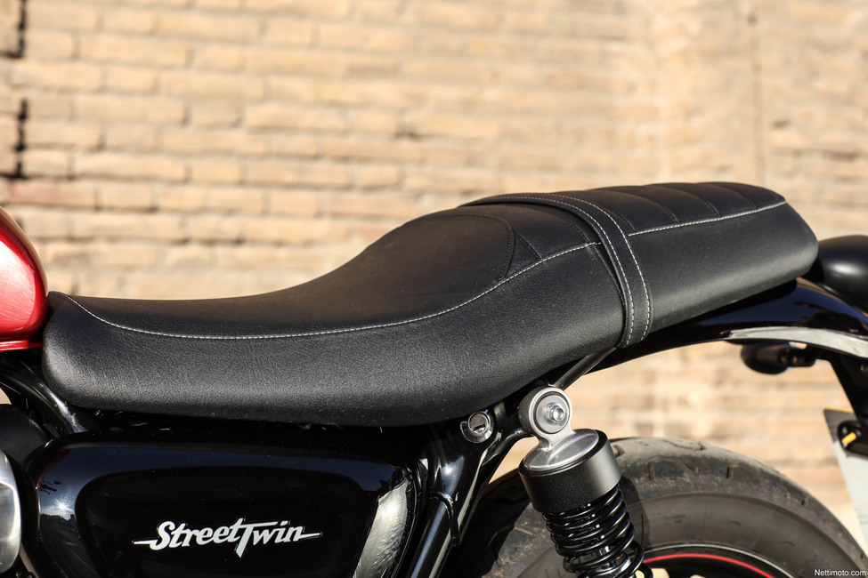 Street Twinin kyytiin istuessa kiinnittyy huomio ensimmäisenä matalaan istuinkorkeuteen sekä keveyteen. Vaikka istuimessa on nyt 25 milliä enemmän pehmustetta, jää istuinkorkeus vain 750 millimetriin. Jalat yltävät tukevasti maahan, mikä puolestaan tekee 198 kilon kuivapainoisesta pyörästä erittäin kevyen tuntuisen käsitellä. Hallintalaitteiden sijoittelu on osunut hyvin kohdalleen ja mittaristo on sekä selkeä että tyyliin sopiva. Siispä rivikakkonen käyntiin ja liikkeelle.