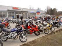 Tämä lauantai on muutenkin osoittautunut kevään kynnyspuuksi, pyörien määrä katukuvassa on moninkertaistunut hetkessä. Testosteroni väreilee ilmassa ja välikaasua annetaan normaalia useammin. Joka ikinen pyörä kiiltää kilpaa auringon kanssa eikä talvisesta apatiasta ole tietoakaan, kun kuskin syke nousee koneen kierrosten kanssa kilpaa. Pitkääkin pidempi kuuden kuukauden odotus on ohi, tuhannet hormit uhkuvat voimaa.