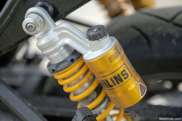 Moottorin luonne on todella pehmeä ja Öhlinsin valmistamat takaiskunvaimentimet antavat nekin mukavat kyydit. Kahdella erillisellä takajousella toteutettu takapään iskunvaimennus henkii menneitä aikoja, mutta modernisoitu tekniikka tuo tuntuman tähän päivään.