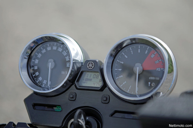 XJR näyttää siis klassisen komealta, mutta mukaan on tuotu pieniä elementtejä modernista prätkänvalmistuksesta. Yksi tällaisista on nykytekniikalla valmistetun alustan lisäksi mittaristosta löytyvä digitaalinäyttö, joka on informaatioltaan varsin pelkistetty. Siihen heijastetaan bensamittarin lisäksi kilometrilukema ja trippimittari.