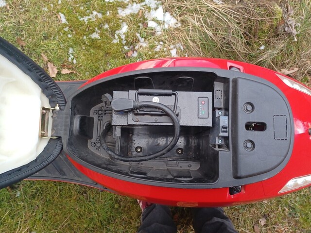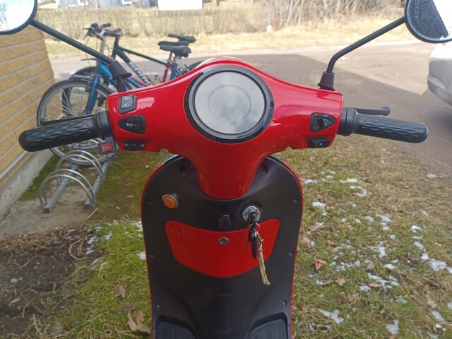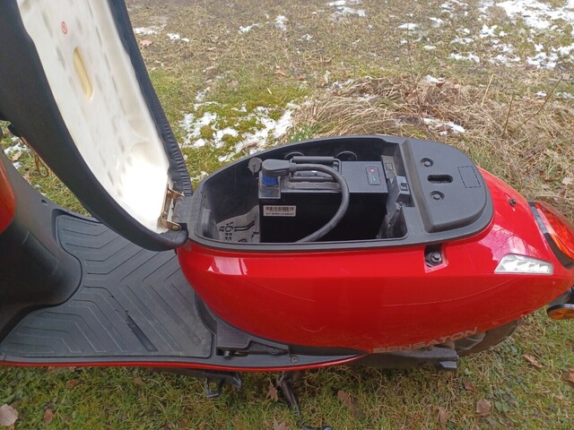 Toimii yhtä hyvin kuin ostopäivänä. Mukaan tulee kaksi akkua seka akkulaturit. Skootterista löytyy pari naarmua mutta ei ole muita moitteita. Huippunopeus 45 km/h. Mukaan tulle kahdet avaimet.
