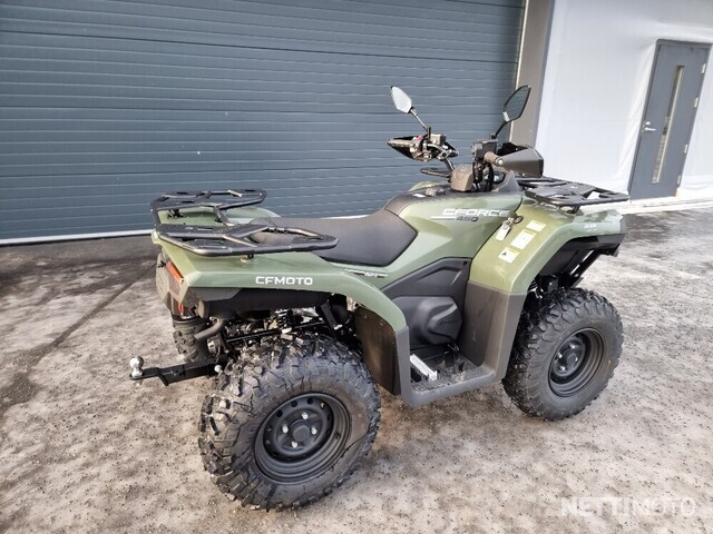 Mönkijän vakiovarusteena tulevat E-hyväksytty vinssi ja vetokuula, joista on hyötyä monenlaisissa töissä. Uusi CFORCE 450 -mönkijä on saatavilla lyhyenä ja pitkänä versiona vihreässä Hunter Green -värissä.
