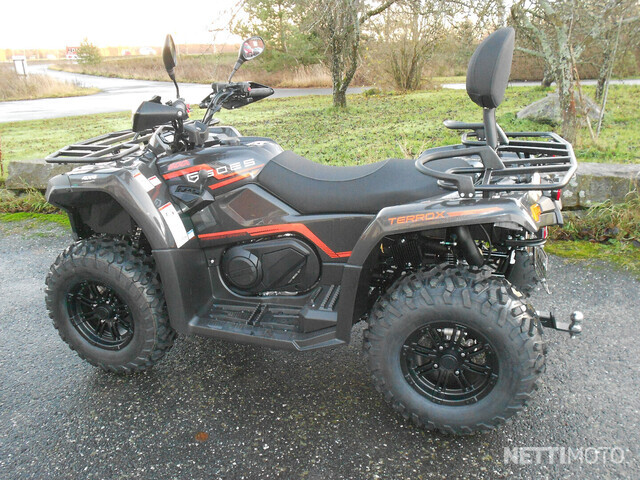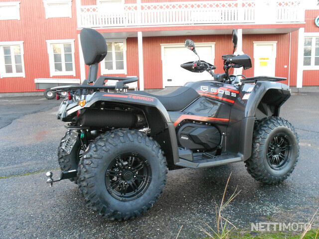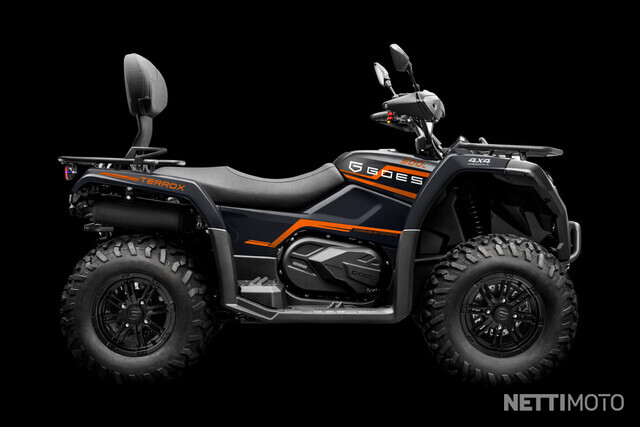 GOES 500 TERROX -malli on saatavilla pitkänä versiona, joka on rekisteröitävissä 2 henkilölle. Ohjaustehostin vakiona. Mönkijän väri on musta.