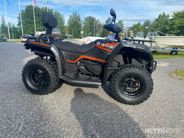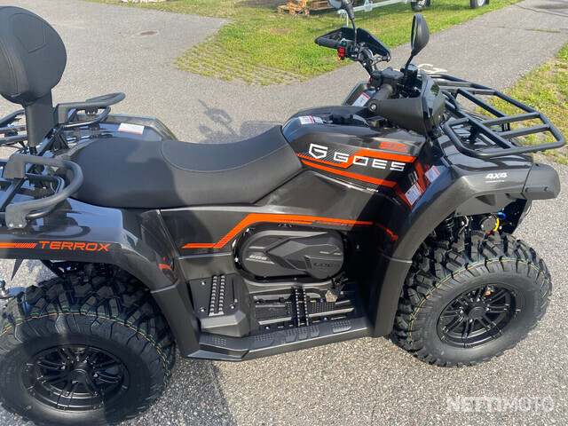 GOES 400 TERROX -malli nyt myynnissä edulliseen 5590€ hintaan! Se on saatavilla pitkänä versiona, joka on rekisteröitävissä 2 henkilölle, eikä siihen sisälly ohjaustehostinta. Mönkijän väri on musta.