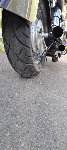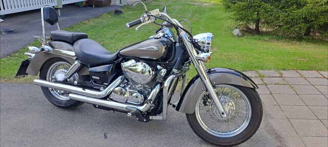 Kardaanivetoinen Shadowi pikkukilsoilla valmiina ajoon.