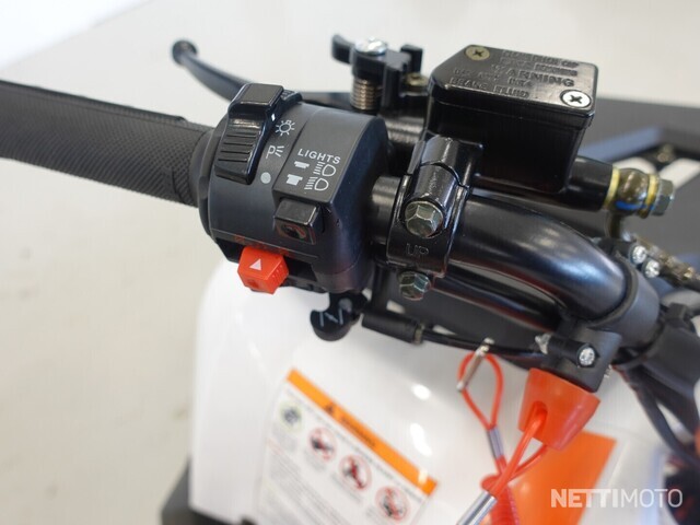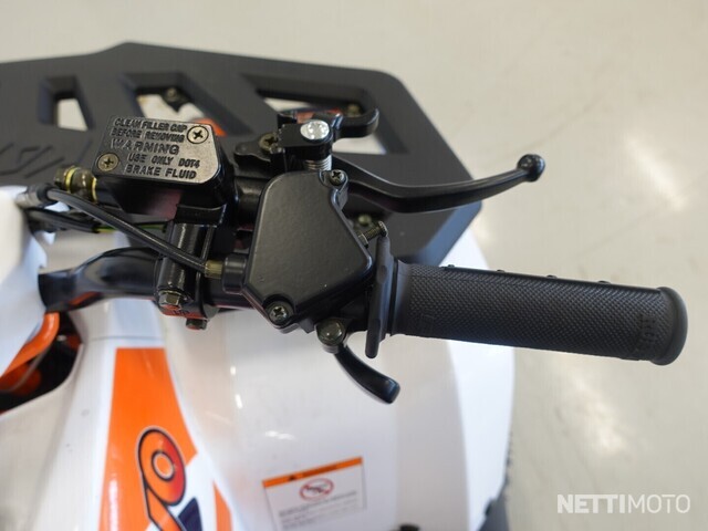 Hallintalaitteissa on huomioitu pienten kuskien tarpeet, eli sormet ylettyvät hyvin jarruvivuille sekä peukalolla käytettävään kaasuun. Jarruvipuja on kaksi, vasemmalla puolella on takajarrun vipu ja oikealla etujarrun vipu. Molemmat jarrut ovat hydrauliset levyjarrut, eli jarrutusteho on hyvä.