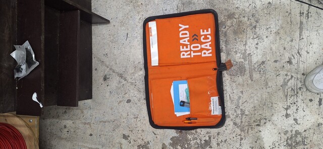 Ktm-huoltokirja, jossa kuitit kaikista remonteista
