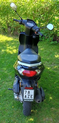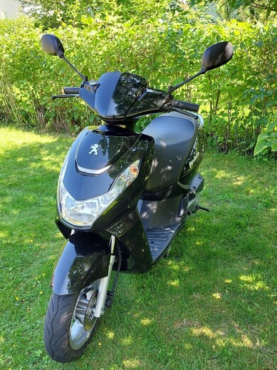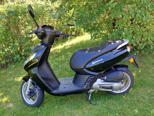 Hyväkuntoinen Peugeot Kisbee skootteri. Toimii moitteettomasti – tästä helppo ja huoleton peli suoraan ajoon.