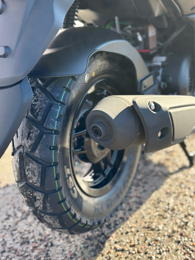 Paksut 120/90-10 renkaat tekevät ajosta miellyttävää myös huonommissa ajo-olosuhteissa, esim. metsäpoluilla ja hiekkateillä.