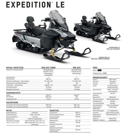 60cm leveällä telalla varustettu Expedition LE 900ACE TURBO moottorilla.