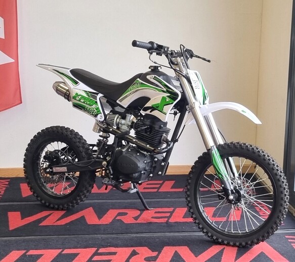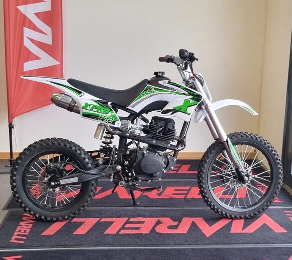Dirtbike X-Pro FX 150cc on yksi suurimmista 17-tuumaisella eturenkaalla ja 14-tuumaisella takarenkaalla olevista malleistamme. 150cc-mallissa on 4-tahtimoottori ja 5-vaihteinen vaihdelaatikko. Todellinen tehopakkaus erittäin edulliseen hintaan. Varmista oman Dirtbike X-Pro 150cc -pyöräsi saanti jo nyt, tiedämme nimittäin kokemuksesta, että nämä yleensä loppuvat erittäin nopeasti.