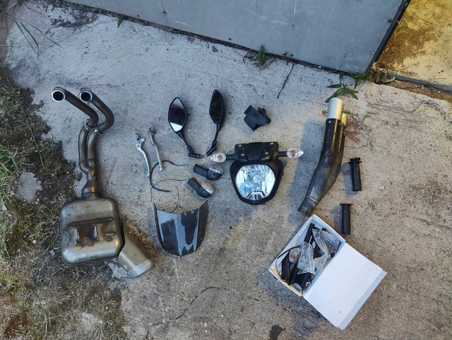 Mukaan tulee vanha etuvalo, täydellinen alkuperäinen putkisto, ixilin kaksihaarainen takaputki, orkkis peilit ja kaikkea muuta pientä tavaraa mikä kuuluu pyörään