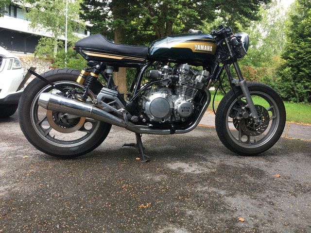 Cafe Racer kaasarikoneella ja kardaanivedolla. Pyörässä on kaikki kohdallaan, mutta pientä tekemistä ja siistimistä löytyy.