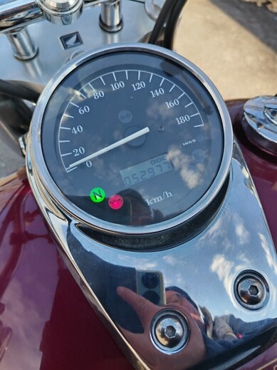 Hyvin pidetty, huollettu ja luotettava HONDA Custom moottoripyörä. Viininpunainen.