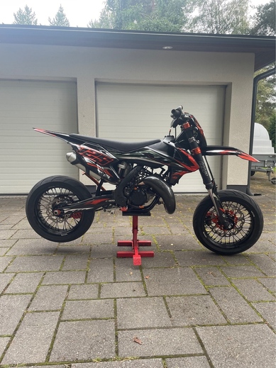 -VMX GLM supermoto vanteet sekä 320mm etujarru levy.