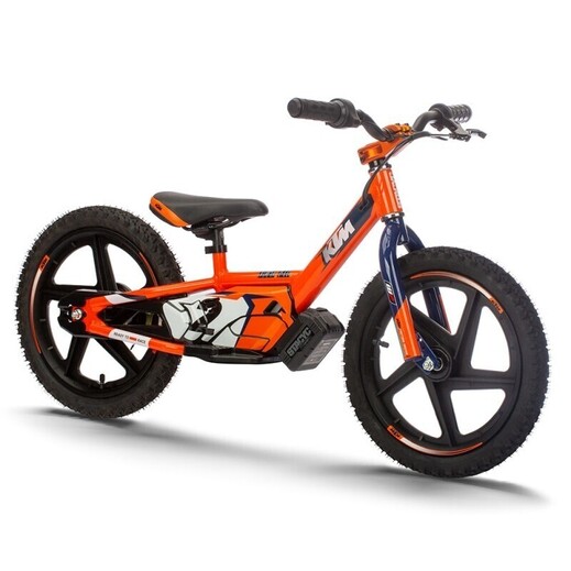 Perheen pienimpien sähköpyörän lippulaiva malli! - Nyt supertarjouksessa todella laadukas auto KTM Stacyc 16" 4-8v juniorikuskin unelma!