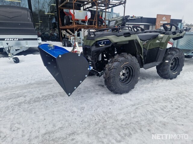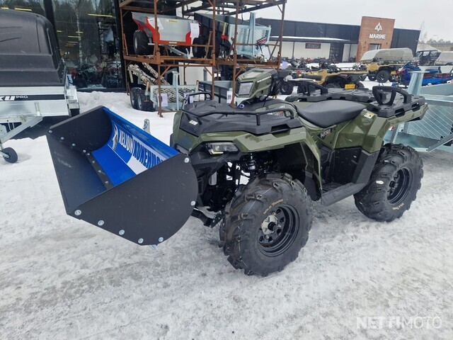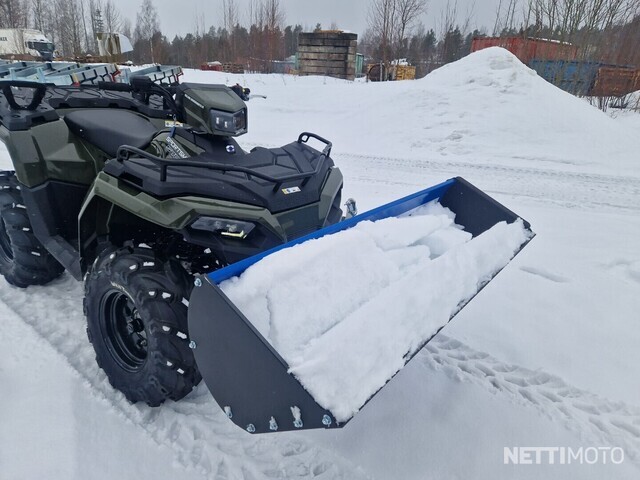 tässä em. polaris sportsman 570 60km/h 2:delle rekisteröityä uudistettua traktoria kunnollisella 1134kg vinssillä, 150cm kunnollisella pikakiinnitteisellä aurapaketilla ja kippaavalla kauhapaketilla + todella järeällä (kant.1500kg) lavatukkikärryllä joka muuntuu maan ja puun ajoon ja jossa kulkee jopa 5m tukki vaivatta!