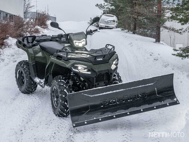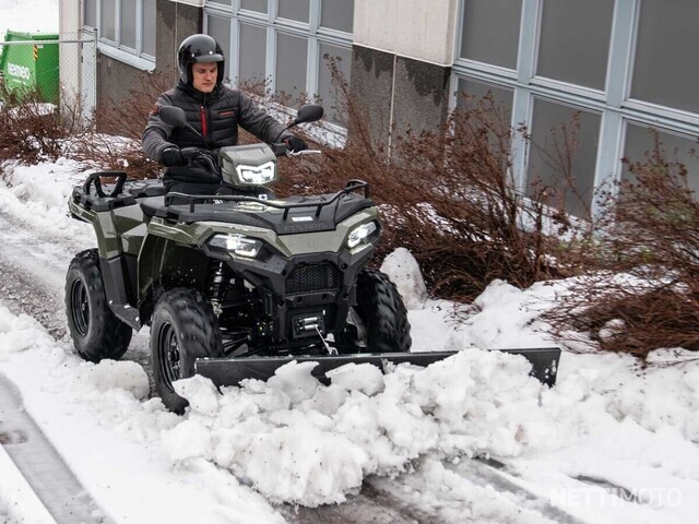 Polaris Sportsman 570 Winterpack Edition. Kampanjapaketissa mukana sähkövinssi, puskulevy ja polaris atv peräkärry.
