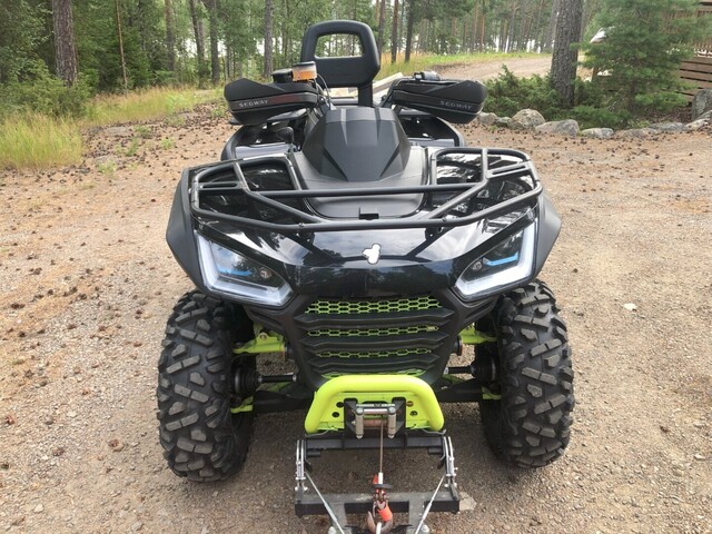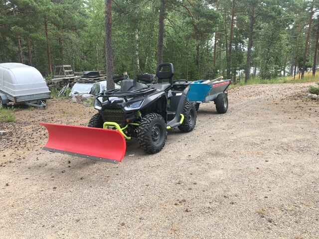 Hyvä ja maastokelpoinen työ-, tai vaikka mökkikäyttöön soveltuva mönkijä! Mukaan tulee lumentyönnin, jolla teet kätevästi pihan lumityöt talvella.