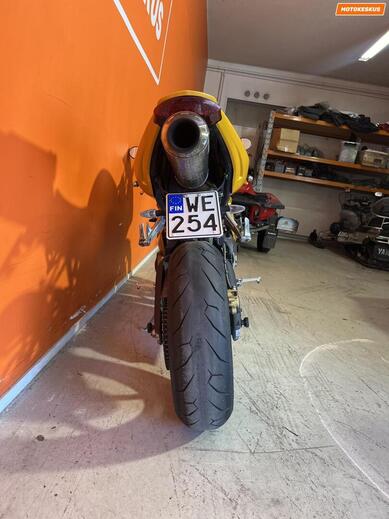 Kevyt runko, tarkka ajotuntuma ja 125-hevosvoimainen rivikolmonen tekevät tästä loistavan valinnan niin mutkapätkille kuin radalle. Daytona 675 on tunnettu hyvästä väännöstään keskialueella. Viime keväänä huollettu edellisen omistajan toimesta, öljyt + suod ja keulahuolto. Äänenvaimennin vaihdettu ja pyörä säädetty sille.