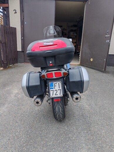 Hyvä kuntoinen. Alkuperäiset sivulaukut ja Kapan 45l takalaukku. Kahvan lämmittimet ja säädettävä touring pleksi.
