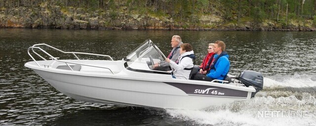 45 Duo on Suvin suosittujen Duo-mallien pikkusisko. Näin myös hieman pienenemmän ja edullisemman veneen ostajat pääsevät nauttimaan tuplapulpettiveneen eduista ja ominaisuuksista.