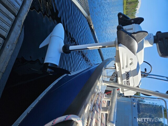 Hyvin varusteltu valmiina uisteluun tai heittokalastukseen. Vene nyt Oulun liikkeessä.