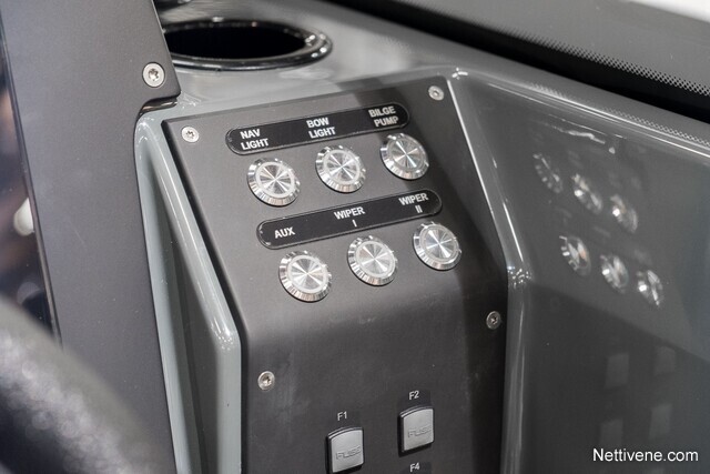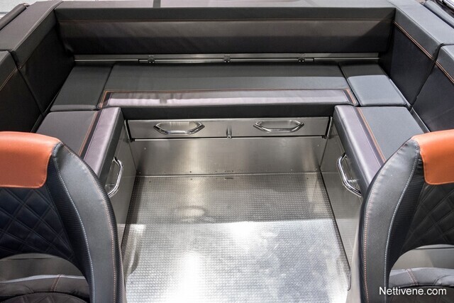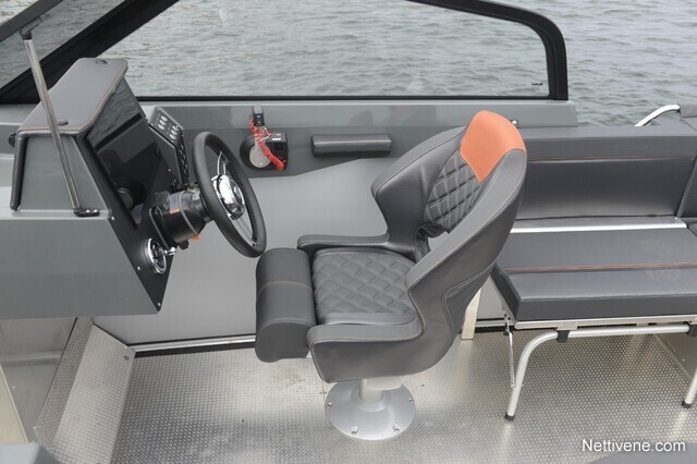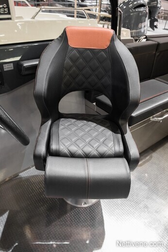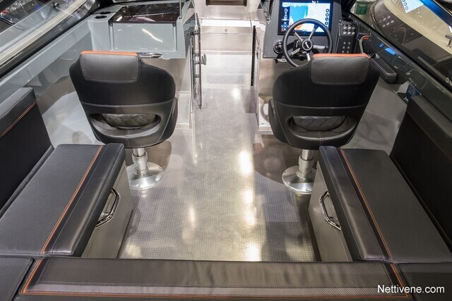 U-mallinen, tilava takapenkki on vakiovaruste.Vakiovarusteisiin kuuluvat myös mm. tilttiratti ja trimmilevyt joystick-ohjauksella, kansivalot ja avaimeton käynnistys. Lattia on liukuestekuvioitua alumiinia, kaiteet, knaapit ja muu kansiheloitus ruostumatonta terästä. Lisäksi lisävarusteena on saatavilla istuinten offshore-joustojalat erillisenä tehdasoptiona. Tehdasasenteisena lisävarusteena on saatavana myös peräkuomu, joka kiinittyy tuulilasiin näppärästi vetoketjulla. Säilytystä varten on saatavilla erilliset satamakuomut sekä keulaan että perään.