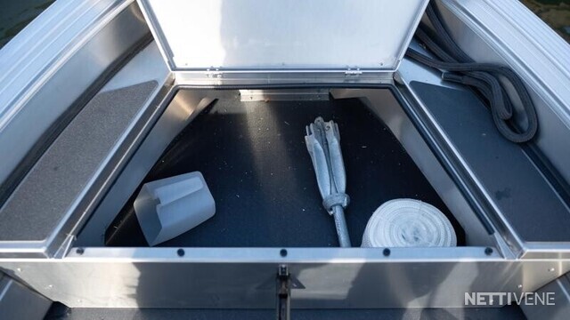 Säilytystilaa löytyy takapenkistä, matkustajan hansikaslokerosta sekä isosta keulaportaasta. Ison ja tasaisen keulaportaan ansiosta veneeseen on myös helppo astua, ja pehmustetyynyn avulla keulaan saa myös mukavan istumapaikan. Kulku veneeseen ja sen läpi on selkeä, ja keulassa on sopivasti tyhjää turkkitilaa.
